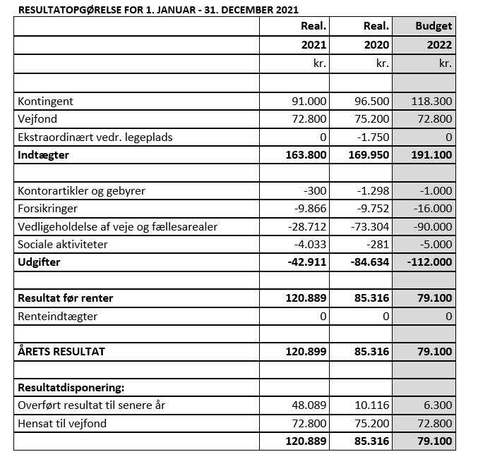 Bestyrelsen har i dag aflagt regnskabet for 2021 for Grundejerforeningen Planetbyen II.